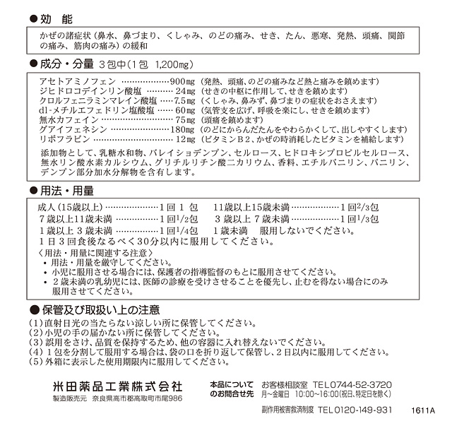 飲みやすく溶けやすい微粒タイプで、1歳から服用できる、家族みんなの総合かぜ薬です