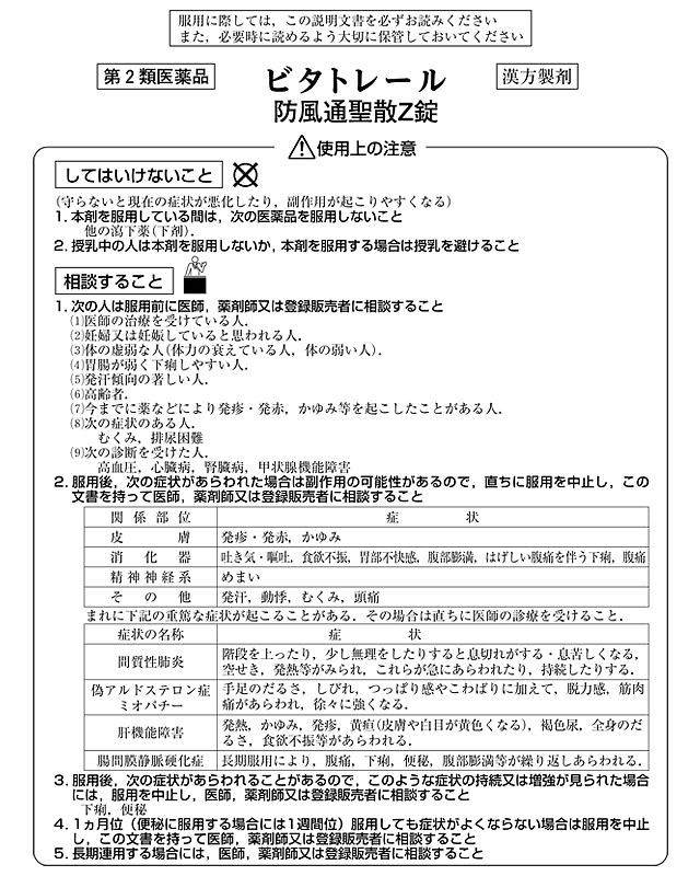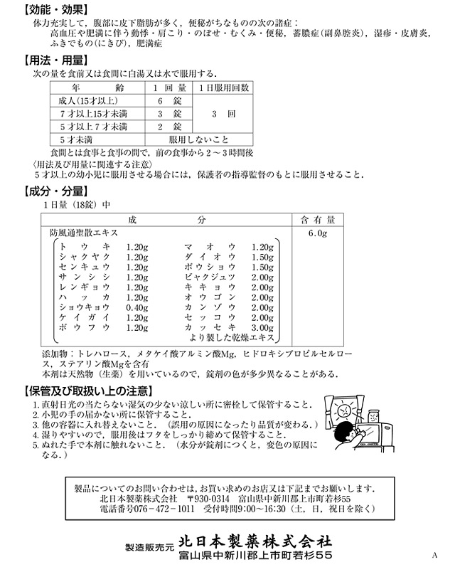 【第2類医薬品】 北日本製薬 漢方薬 ビタトレール 防風通聖散Z錠 378錠について