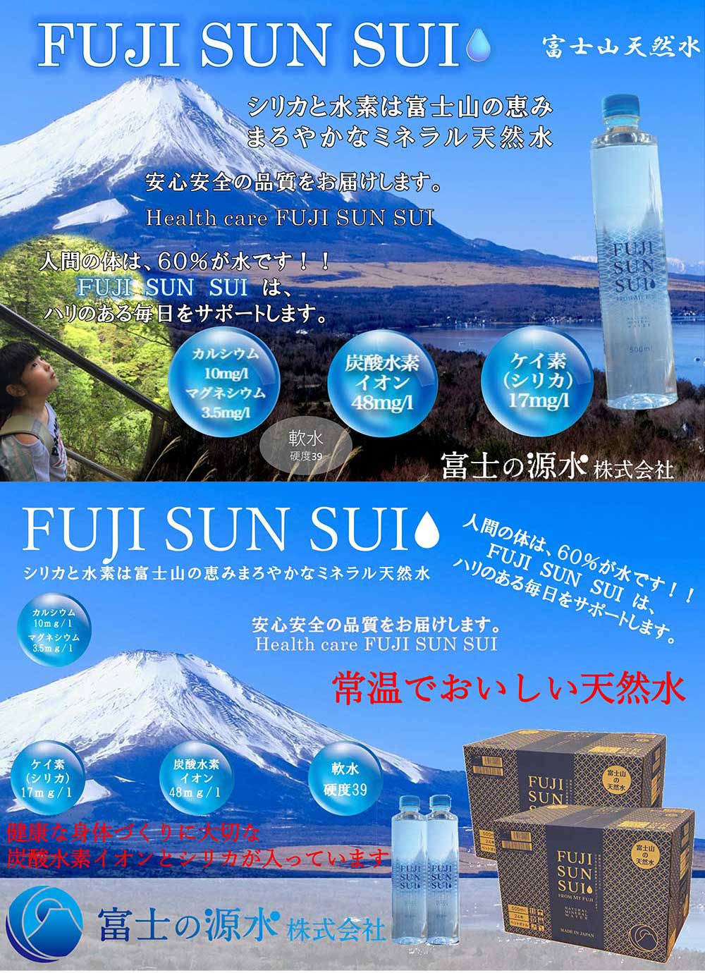 FUJI SUN SUIは含まれる貴重なミネラルを体が吸収しやすいよう、加熱処理をせずそのままボトリングしています。