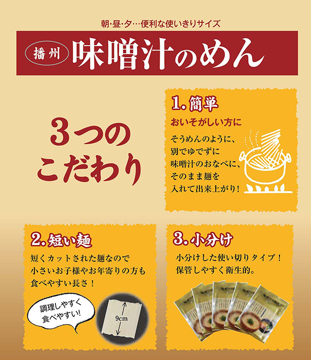 素麺の本場・播州で培われた技法を用いて、みそ汁用に仕上げました。
