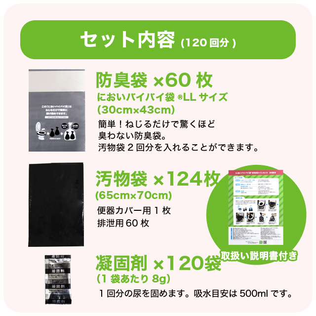 【ポイント10倍】においバイバイ袋 非常用トイレセット 120回分について
