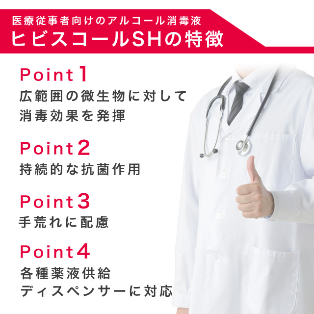広範囲の微生物に対して簡便かつ持続的な消毒効果を発揮する無色のエタノール溶液です。