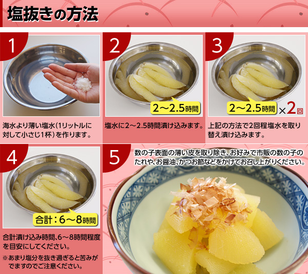 ◆塩抜き後は3日以内にお召し上がりください。冷凍不可。
