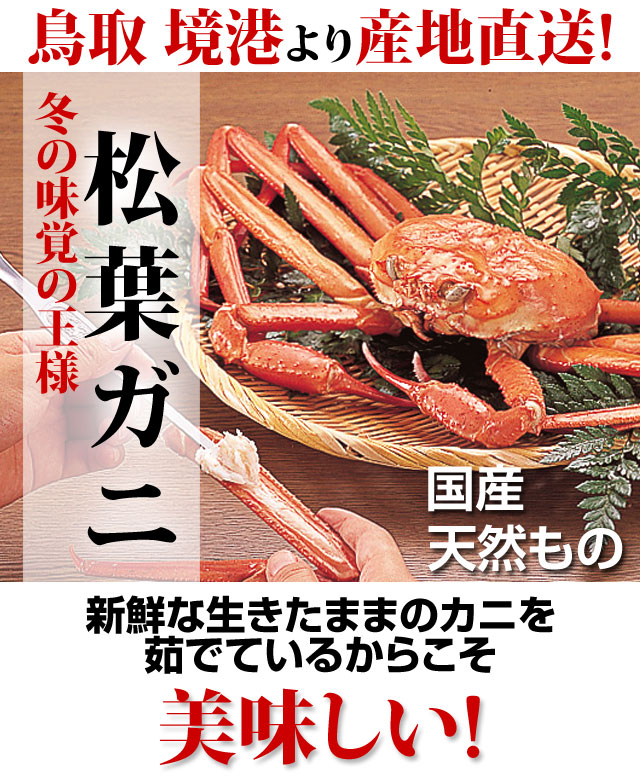 プロのカニ目利きが厳選した、本場極上の松葉ガニを驚きの大特価で産地よりお届けいたします。