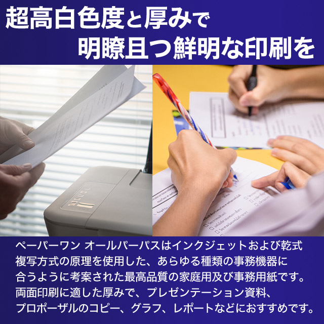 PaperOne(TM)AllPurposeは、すべての印刷機およびコピー機向けの高品質の家庭用およびオフィス用用紙です。