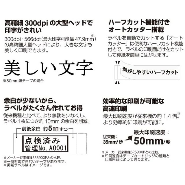 従来機(SR5900P)と比べて、より無駄を少なくし、ラベル1枚につき約10mmの余白を削減。