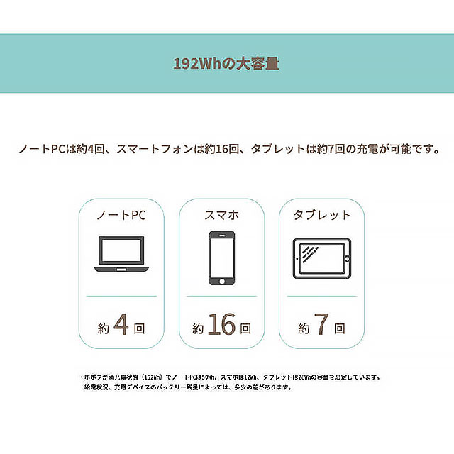 ※充電デバイスのバッテリーにより異なる場合があります。(大量のバッテリーを使用するCAD、AIは除く。)