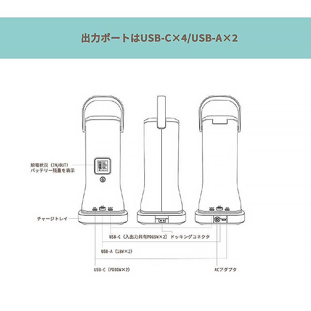 ◆出力ポート/USB Type-C×4(内2口は入出力共用、USB PD 65W×2、USB PD 30W×2)、USB Type-A×2(18W×2)