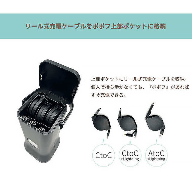 上部にケーブルを収納するスペースがあり、リール式充電ケーブルを収納可能。