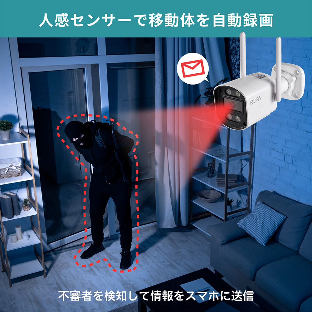 音や光で悪者を撃退し、自動録画&スマホ通知で安心な暮らしを手助けしてくれるスグレモノです。