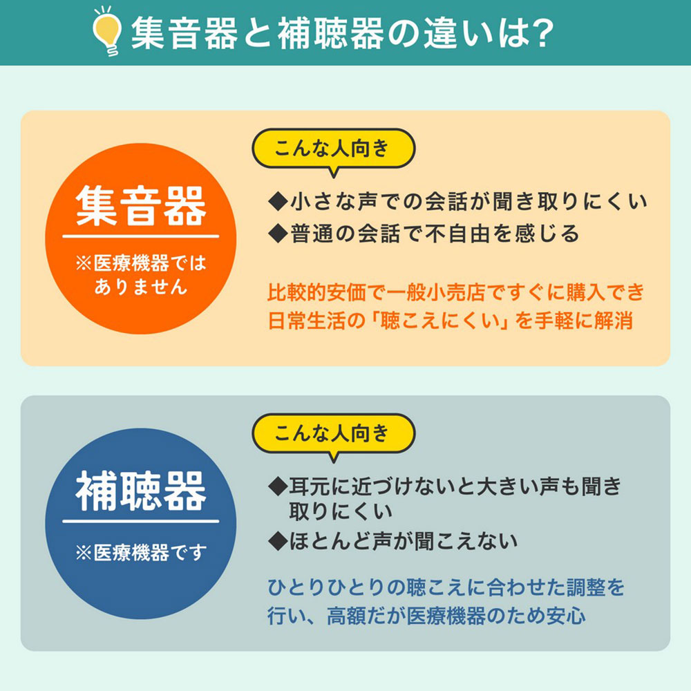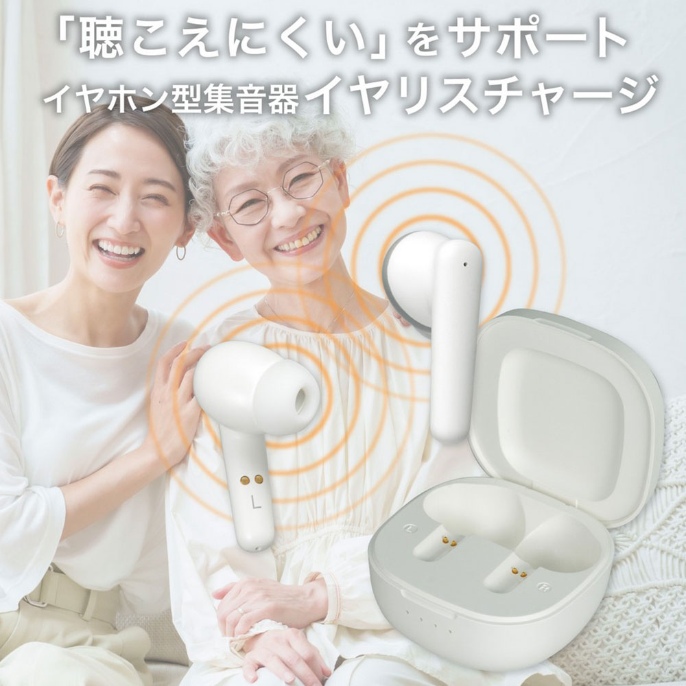 - ◆サイズ/集音器:約W23×D20×H36mm、充電ケース:約W30×D54×H54mm