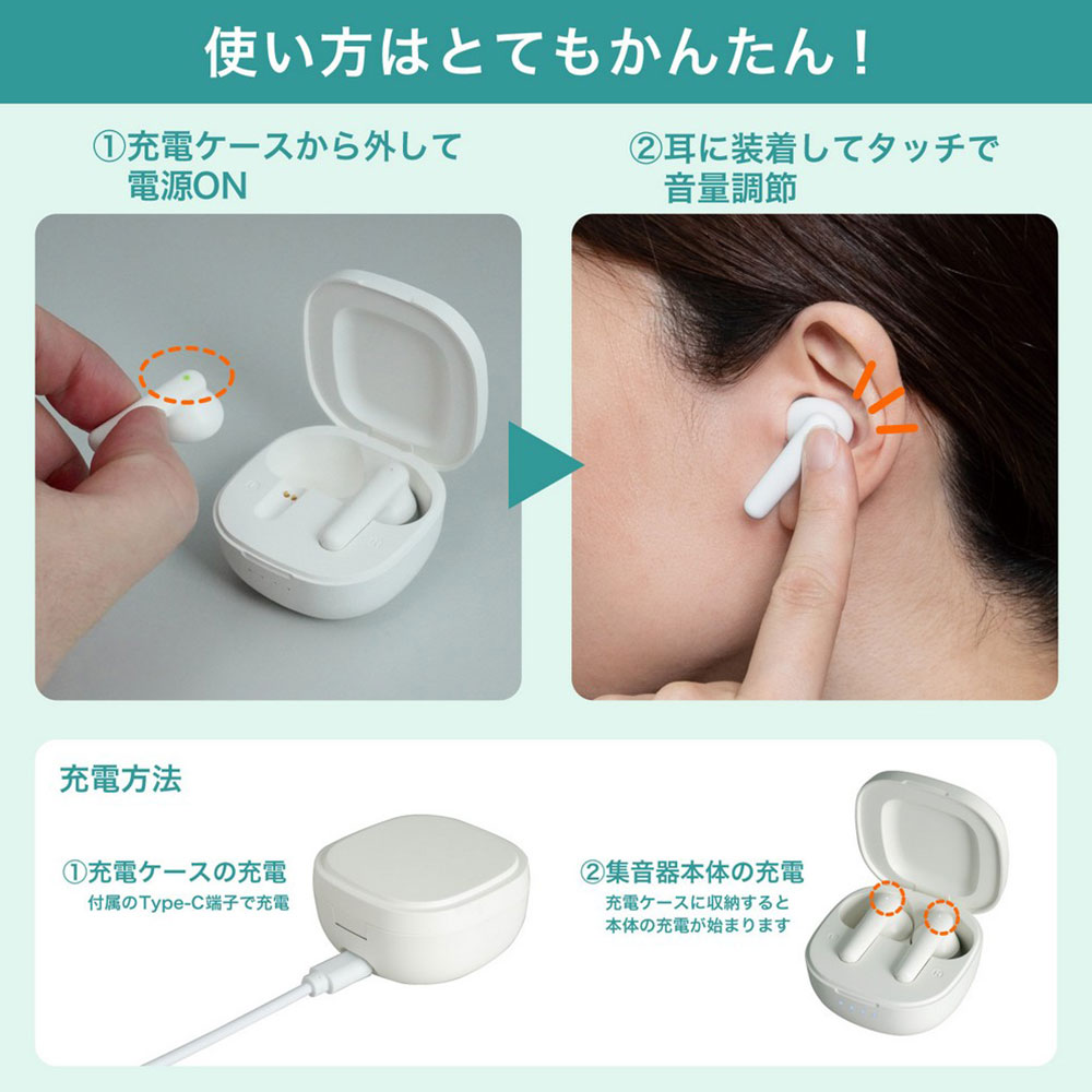◆充電時間/集音器:約2時間、充電ケース:約2時間