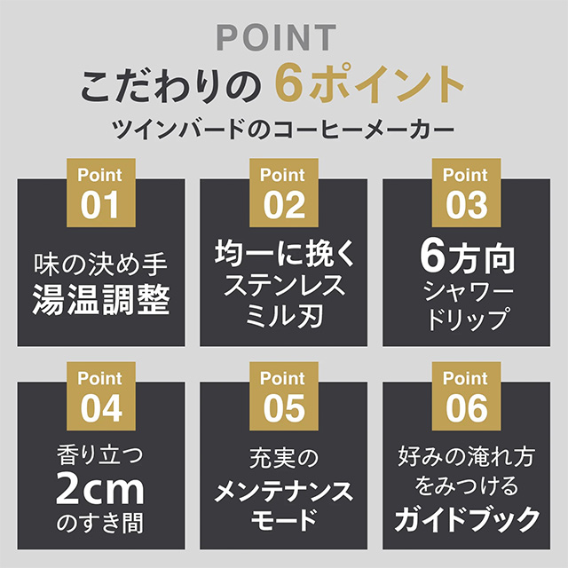 6方向からのシャワードリップでドリップすることで、ハンドドリップに近いドリップを再現。