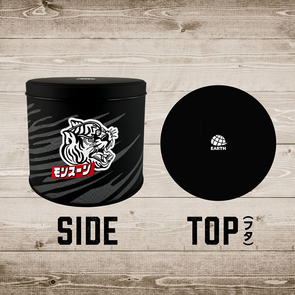 「アース虫よけ線香モンスーン」専用のブリキ缶です。